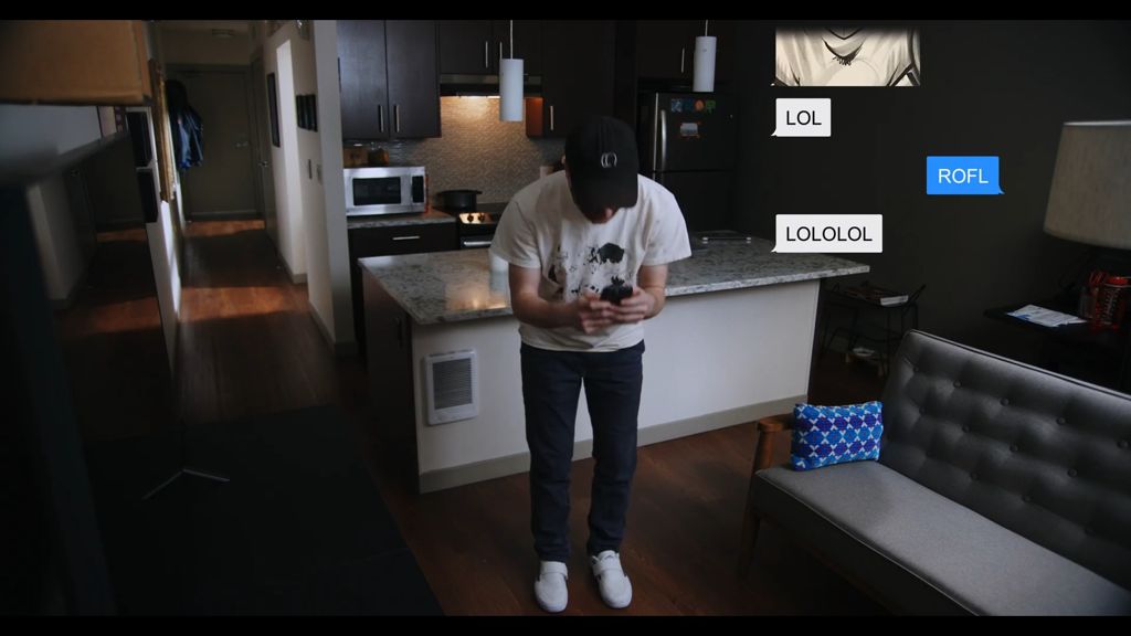 "Everyone has had the experience of texting with someone and, in response to a halfway funny message, we stare at the screen completely serious and type 'lol' without raising a decibel," said LAMAR+NIK, who are represented by Doomsday Entertainment but who shot Text IRL through their own company, Arithmetic. "We thought it would be funny to illustrate the extreme language we all use when communicating in a very literal way. It seemed like an interesting idea to explore the visual of someone actually doing the things they are texting during a fairly mundane conversation. It was also fun to come up with consequences for communicating in hyperbole."