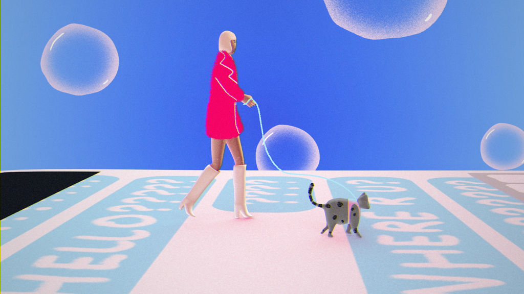 Recreating the out-of-body experience when you try to reach someone you care about, distance is represented by bubbles that separate Teddi Gold from her phone, cat, and surroundings. The piece is strange and wonderful, merging styles and animation techniques to create a richly layered, ever-moving target for friendship and connection.