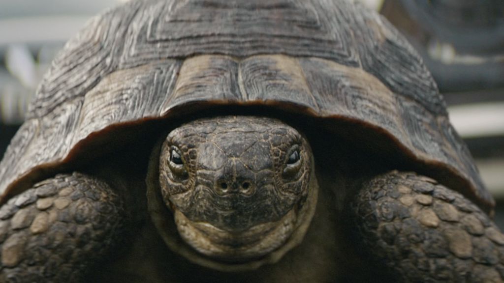 We've seen a chilled out, skateboarding dog, now it's the turn of a fun-loving rollerblading turtle.