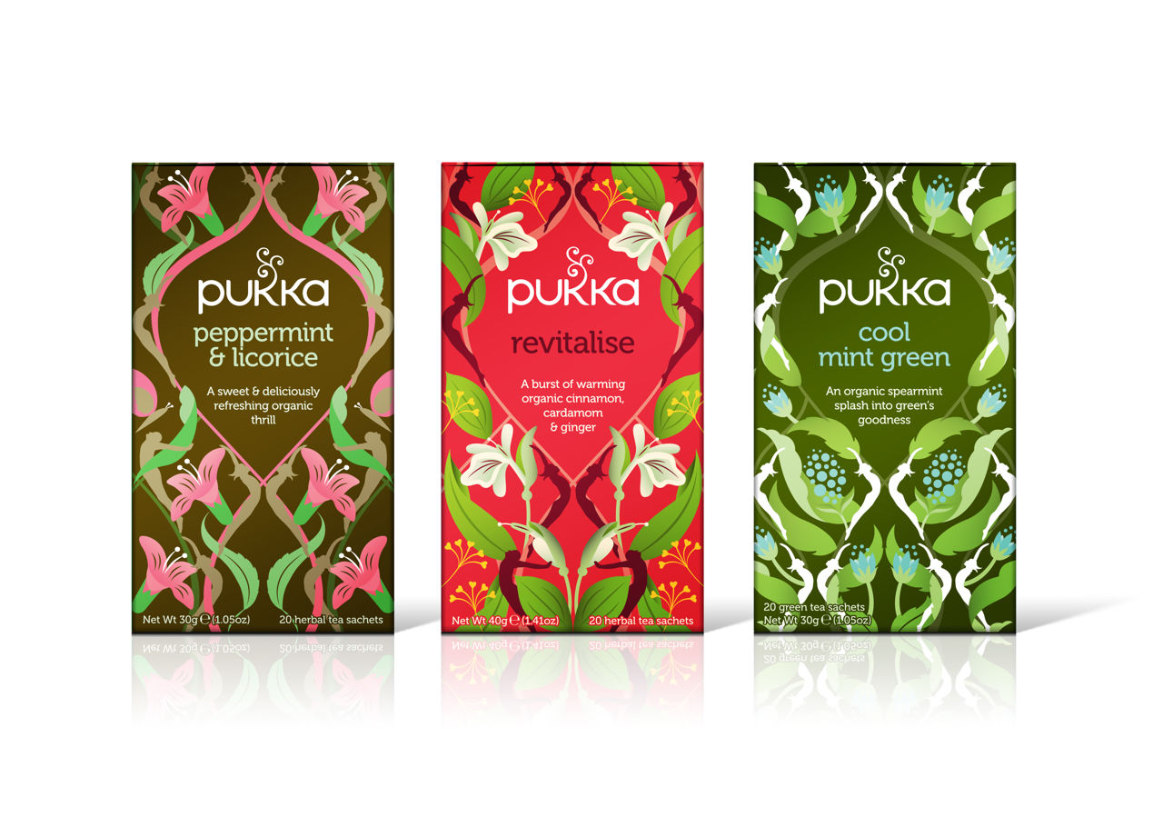 Space Creative gave Pukka tea's packaging a completely new and ownable brand look.