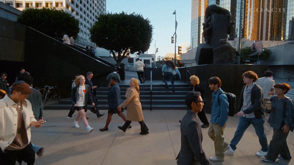 She begins to move through streets and playfully change the speed of passersby, the colourful scenes brought to life by a creative blend of live action and VFX.