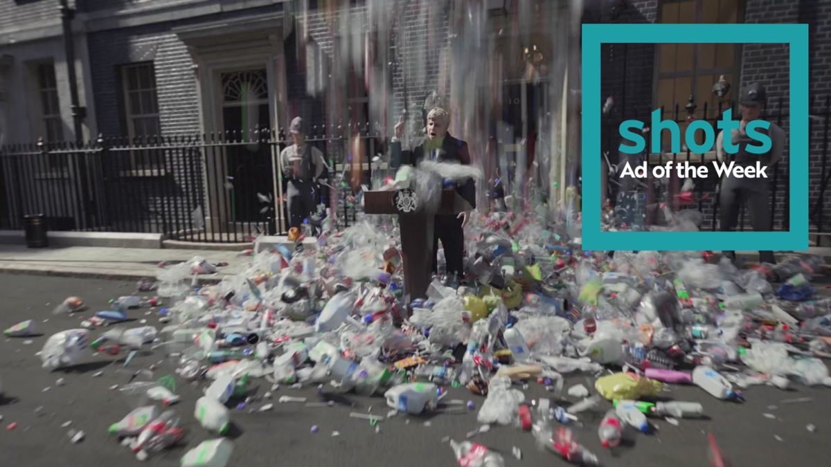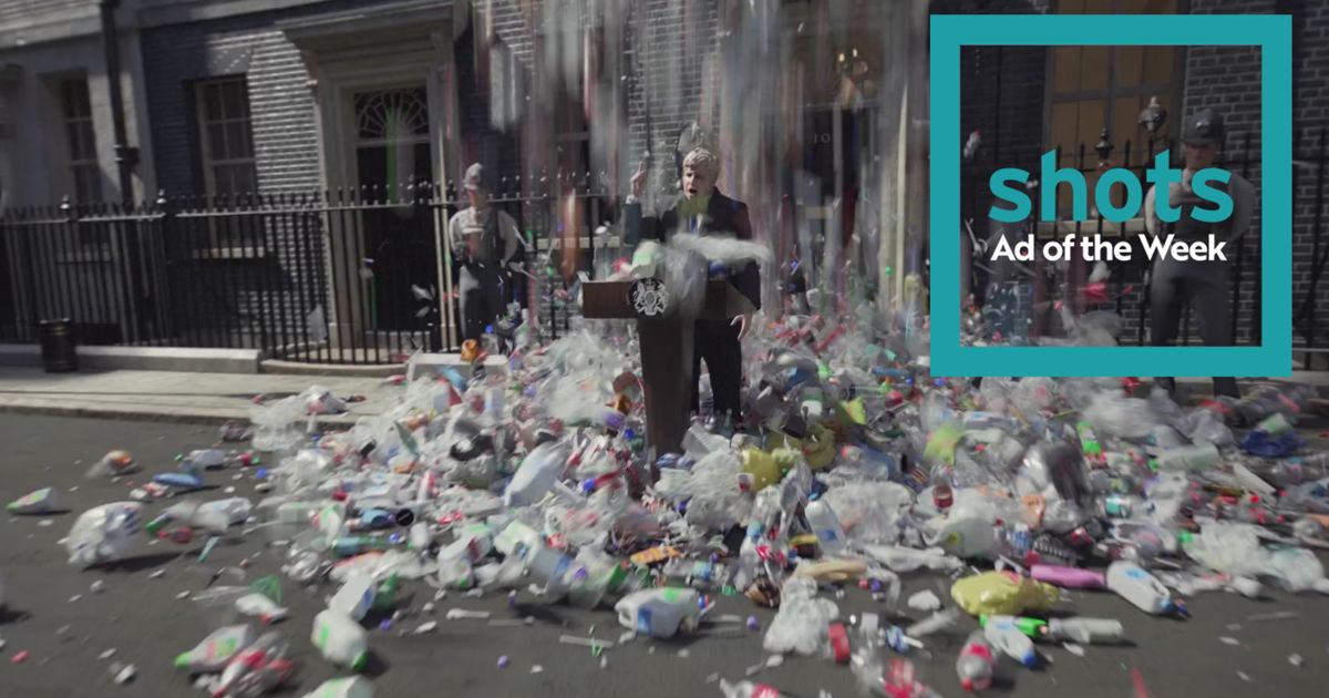 A brilliant but frightening new campaign from Greenpeace features a bumbling British prime minister spouting platitudes about protecting the planet while being overcome by a tsunami of plastic waste.