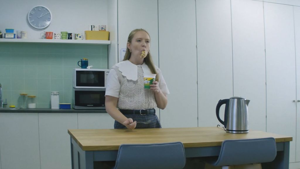 After several failed attempts by the actress to create the sound naturally, Thind managed it with technical trickery, but the result just wasn’t that funny. So, he started playing around with the slurp, adding in some small nuances and hiatuses, “as if the noodle got stuck, and they had to suck a bit harder.” Much more amusing, “but also…. quite annoying.