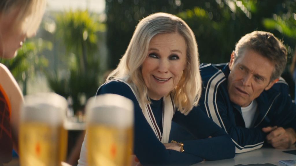 Michelob Ultra has enlisted the talents of Willem Dafoe and Catherine O’Hara as a dastardly duo hustling sport ‘stars’ at a game of pickleball – that miniature tennis game made popular by retirees and people who aren’t fit enough to play real tennis. They’ve got the product being poured within two seconds of the start, before the pair trade pickleballs in various scenarios, coming away with a hoard of booze that could substantiate endless Super Bowl parties.