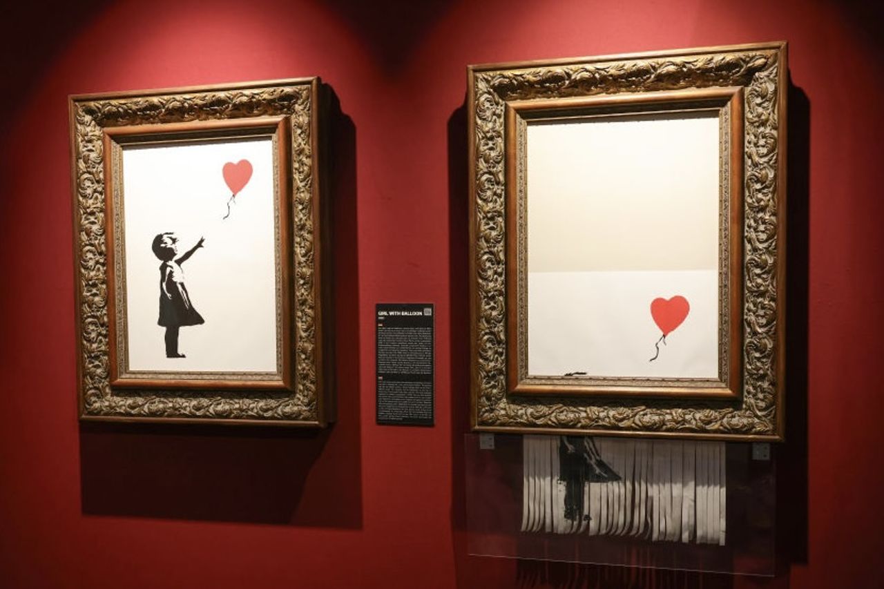 Above: After being sold at auction for £1.1m, Banksy's artwork began to pass through a shredder hidden in its picture frame, and was later sold for a record £16 million.