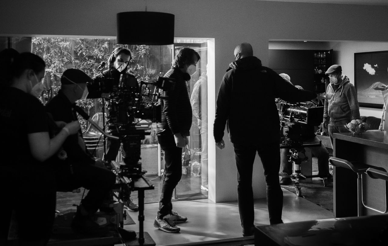 Above: Tom Hooper [centre] and Sam Walker [back to camera], on the set of the G&T shoot.