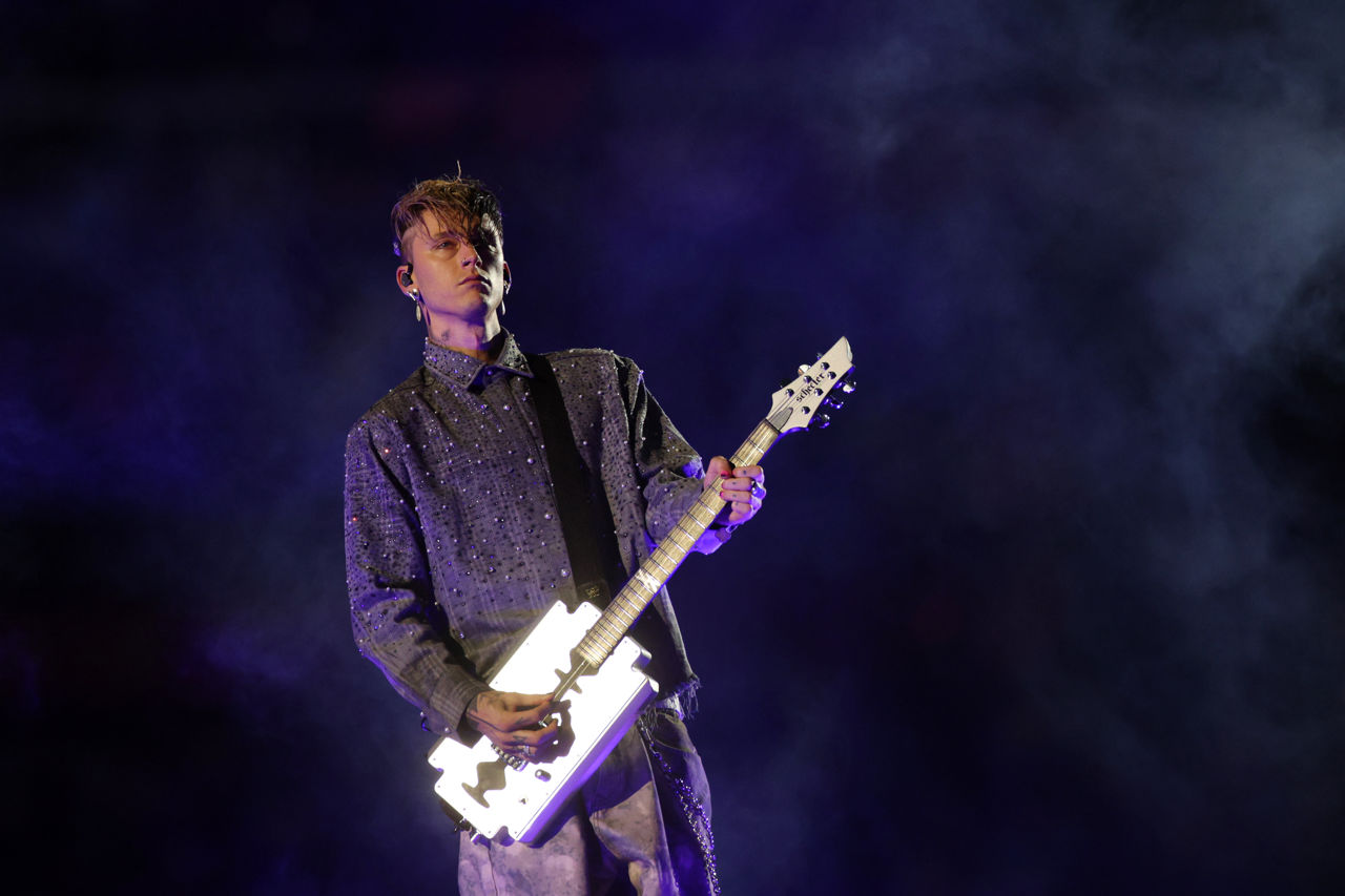 Above: Machine Gun Kelly performing in Munich at the NFL’s final international game last November.