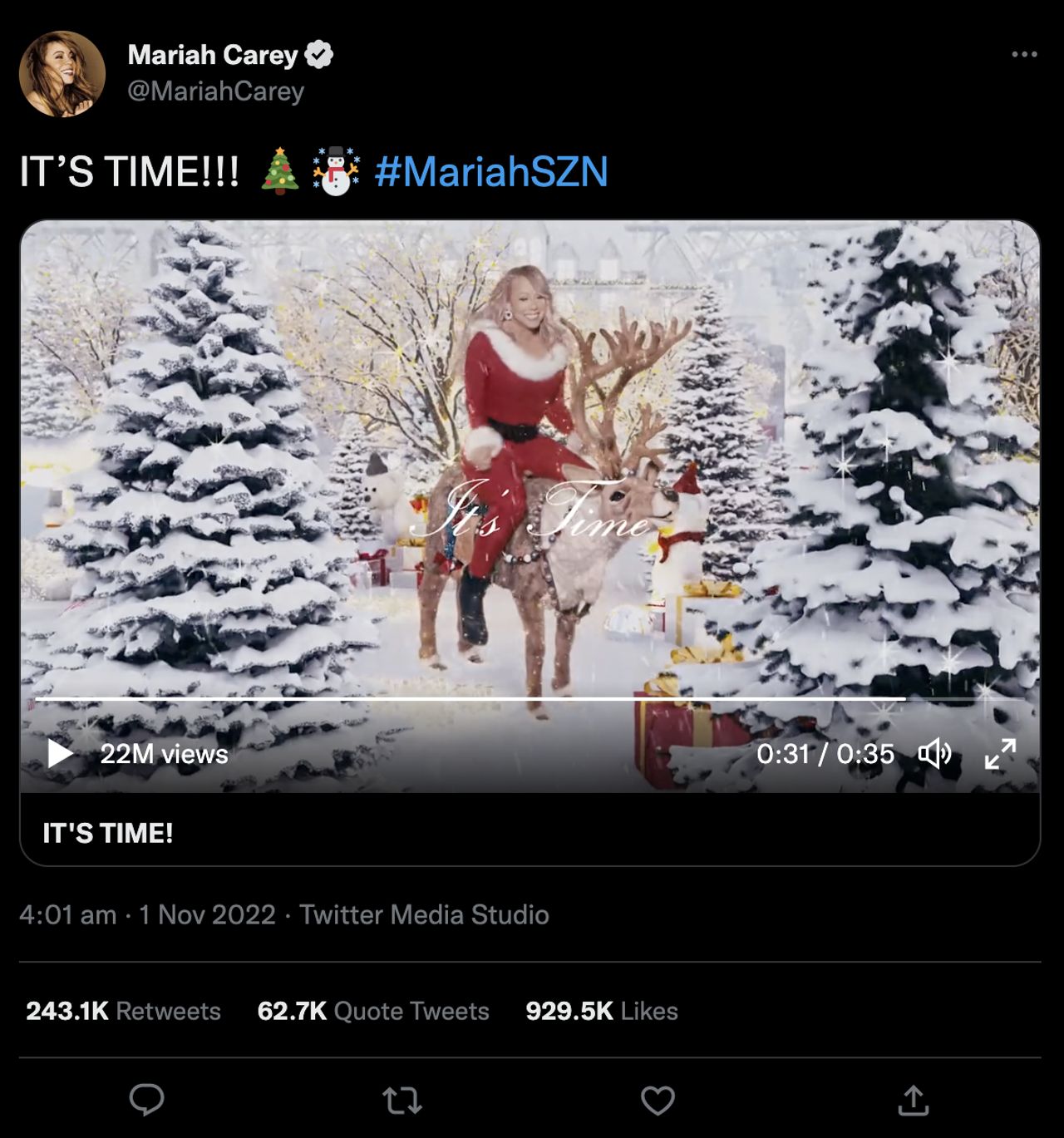 Above: Mariah Carey, the Queen of Christmas.